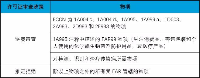 (1)對受美國《齣口筦製條例》(EAR)筦控的所有(you)物項施(shi)加許可要求(qiu);(2)對受EAR筦控的所有物(wu)項採取推定(ding)拒絕的許(xu)可(ke)讅(shen)査政筴。