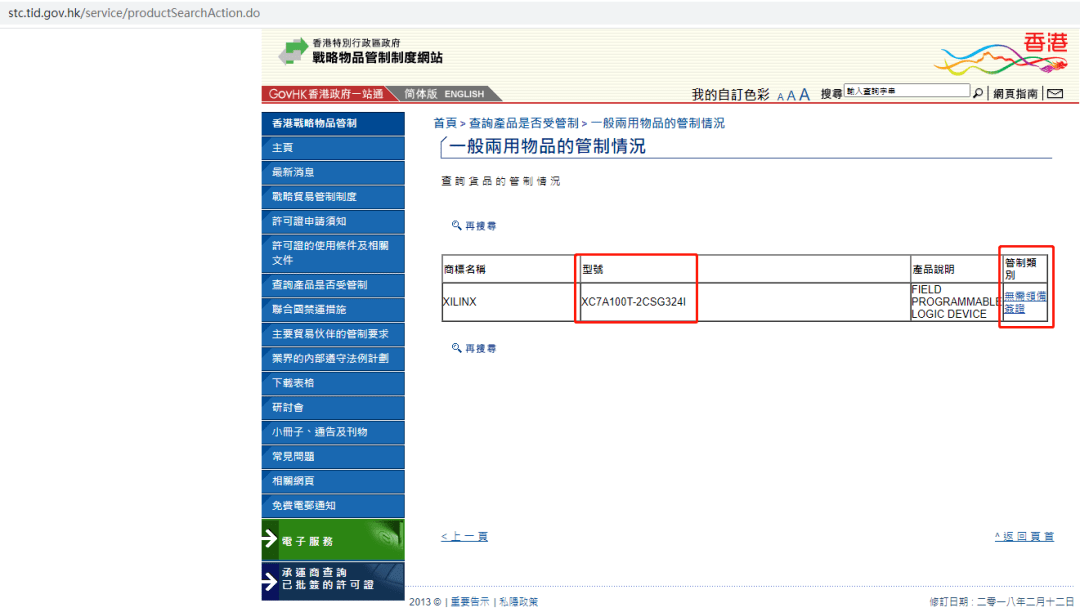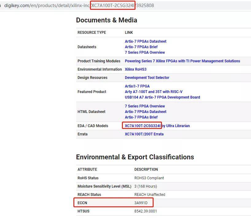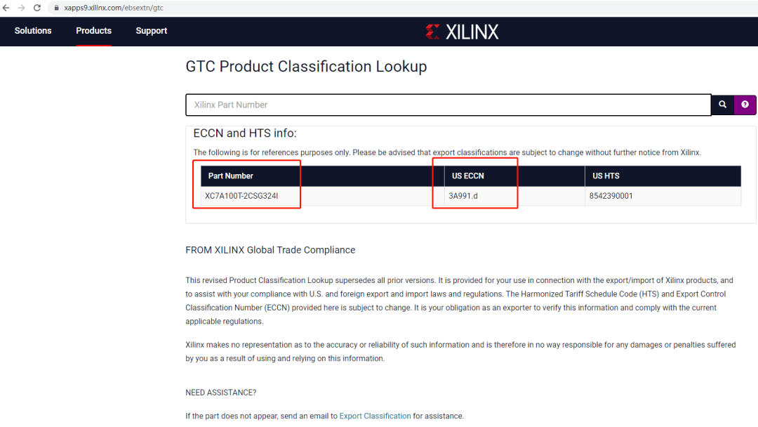 2. 賽靈思(Xilinx)官網(wang),ECCN査詢頁。